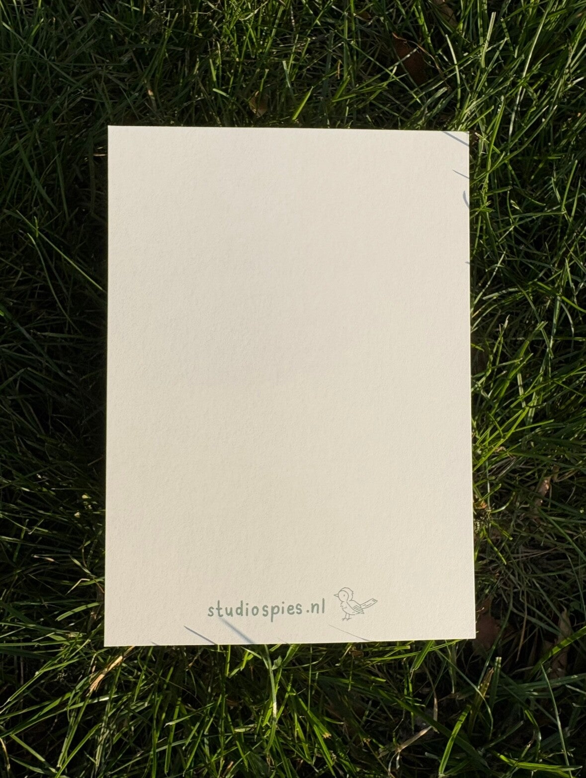 Details: BioPuur papier is chloorvrij gebleekt en daarmee duurzamer. De licht crèmekleurige tint geeft de kaarten een natuurlijke uitstraling. Door de papierdikte (300 grams) zijn de kaarten mooi en stevig.